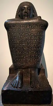 In Memphis, there was found a statue reporting his building work for his king. The statue now in the Ashmolean museum records how Amenhotep donated land, serfs and animals. In return he would receive part of the daily royal offerings, which would be placed before his statue.[2][5][6]