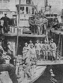 On August 1, 1905, William Brown, a fireman, fell overboard from America while the steamer was at the Washington Street dock in Portland, about thirty minutes before the boat was to depart for St. Helens.[11] Brown had stepped backwards over the side of the vessel while sweeping the deck. At least twenty people at the dock and on the steamer saw Brown fall in the water, but no one did any to help him, such as throw out a line or a plank. The fireman drowned, and his body was recovered just about the time America was set to depart. Brown's body was laid on the dock, then taken to the morgue. Meanwhile, freight was being loaded on the steamer, passengers were embarking, and with a new fireman on board, the boat departed on time.[11]