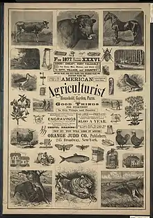 American Agriculturist was an agricultural publication for farm, home, and garden in the United States, published in English and German editions. Its subtitle varied over time: for the Farm, Garden, and Household (1869), for the Household, Garden, Farm (1877). It often included the tag-line Full of Good Things for Everybody, in City, Village, and Country (1877), etc. Solon Robinson was one of its writers. It was illustrated by numerous engravings. In 1885, it published a Family Cyclopaedia.[1] In 1889, it published The Illustrated Dictionary of Gardening: A Practical and Scientific Encyclopedia of Horticulture for Gardeners and Botanists, (in 4 Volumes), which was edited by George Nicholson,[2] This became the basis of the RHS's Dictionary of Gardening.