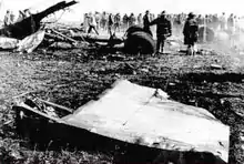 Since the cockpit had been equipped with a closed-circuit television camera positioned behind the captain's shoulder and connected to view screens in the passenger cabin, the passengers may have witnessed these events from the viewpoint of the cockpit as the aircraft dove towards the ground.[10][11] Whether the camera's view was interrupted by the power loss from the number-one electrical bus is not known.[12] The aircraft eventually slammed into a field around 4,600 feet (1,400 m) from the end of the runway.[1]: 2 Large sections of aircraft debris were hurled by the force of the impact into an adjacent trailer park, destroying five trailers and several cars. The DC-10 had also crashed into an old aircraft hangar at the edge of the airport at the former site of Ravenswood Airport, which was used for storage. The aircraft was destroyed by the impact force and ignition of a nearly full load of 21,000 US gallons (79,000 L; 17,000 imp gal) of fuel; no sizable components other than the engines and tail section remained.[13]