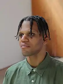 American Artist (b. in Altadena, CA, 1989) is a contemporary artist working in new media, video, installation and writing.[1] They legally changed their name to American Artist in 2013, in order to re-contextualize the definition of the term "American artist"—at once taking on the name of an anonymous term while becoming the embodiment of its meaning.[2][3] Their work, in Artist's words, focuses on themes surrounding "blackness, being, and resistance in the context of networked virtual life."[4]