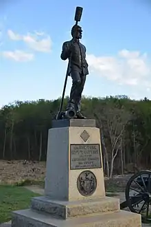 During the Civil War, soldiers on both sides marked the places where their comrades had fallen and erected small monuments at battle sites they had successfully defended or captured.[1] Though rudimentary in nature these battlefield cemeteries prevented the spaces from being developed and the monuments helped to guide later preservation efforts. Real preservation efforts began in the 1890s when sectional tensions had begun to decrease.[4] These efforts tended to focus on the bravery of the soldiers in each individual battles rather than the conflict as a whole in order to minimize conflict over the sites.[5] A second wave of commemoration efforts took place at the end of the First World War. Though initially fueled by patriotic fervor preservation efforts were continued as a way to stimulate job creation during the New Deal.[4] All efforts stopped during the Second World War and were not continued at its conclusion. Due to the Civil War's association with slavery and its continuing legacy of racial violence it became closely associated with the Civil Rights Movement.[4] This politicized battlefield preservation efforts causing the Federal government to distance itself. Real interest in the Civil War was sparked in the 1990s by Ken Burns' documentary The Civil War.[4] By this time the government had taken a 60-year hiatus from preservation efforts and the movement was now run by private organizations, primarily the Civil War Trust.[4]