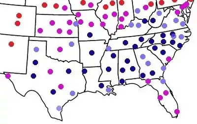 Certain particular vowel sounds are the best defining characteristics of regional North American English including any given speaker's presence, absence, or transitional state of the so-called cot–caught merger. Northeastern New England, Canadian, and Western Pennsylvania accents, as well as all accents of the Western U.S. have a merger of these /ɔ/ and /ɑ/ vowels, so that pairs of words like mock and talk, rod and clawed, or slot and bought rhyme. On the contrary, Baltimore, Philadelphia and New York metropolitan accents, plus inland accents of the Northern and Southern U.S., all strongly resist this merger, keeping the two sounds separate and thus maintaining an extra distinct vowel sound. The rest of the U.S. largely shows a transitional state of the merger, particularly the Midland dialect region, from Ohio to eastern Kansas.