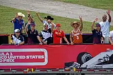 On November 11, 2015, the Texas government cut nearly $6 million of the required $25 million in funding to host the event.[67] Attendance numbers had dropped to 224,011 in October 2015, for the 2015 United States Grand Prix event, after heavy rain from a quickly dissipating Hurricane Patricia.[68] On March 9, 2016, it was confirmed the race would continue to run in Austin, despite the funding cuts. 2016 turned out to be the best-attended Grand Prix in Austin: boosted by a heated World Drivers' Championship battle between Lewis Hamilton and Nico Rosberg, good weather, and the allure of a Saturday night concert from pop singer Taylor Swift, nearly 270,000 people went through the turnstiles during the race weekend.[69] On October 22, 2017, Lewis Hamilton won the race. Former US president Bill Clinton awarded the winning trophy. Justin Timberlake's concert helped boost the Grand Prix attendance by 40,000 over the previous year.[70] In 2018, Britney Spears and Bruno Mars performed.[71]