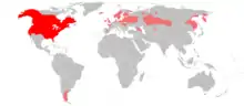 | Native (red) and introduced (pink) range of American mink | |