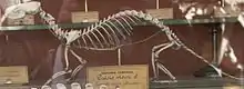 As a species, the American mink represents a more specialized form than the European mink in the direction of carnivory, as indicated by the more developed structure of the skull.[5] Fossil records of the American mink go back as far as the Irvingtonian, though the species is uncommon among Pleistocene animals. Its fossil range corresponds with the species' current natural range. The American minks of the Pleistocene did not differ much in size or morphology from modern populations, though a slight trend toward increased size is apparent from the Irvingtonian through to the Illinoian and Wisconsinan periods.[6]