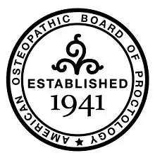 The American Osteopathic Board of Proctology (AOBPR) is an organization that provides board certification to qualified Doctors of Osteopathic Medicine (D.O.) who specialize in the medical and surgical treatment of disorders of the anus, colon, and rectum of the gastrointestinal tract (proctologists). The board is one of 18 medical specialty certifying boards of the American Osteopathic Association Bureau of Osteopathic Specialists approved by the American Osteopathic Association (AOA),[3] and was established in 1941.[1] As of April 2011, there were 25 osteopathic proctologists certified by the AOBPR.[4]