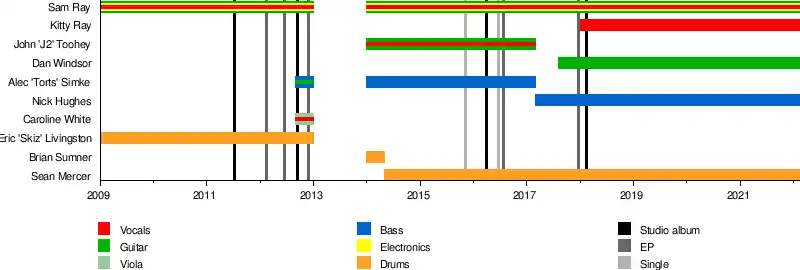 - Sam Ray – guitar, lead vocals, synths[15] (2009–2013, 2013–present)