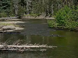 After its confluence with Rainier Fork, the American River flows through Pleasant Valley. It joins the Bumping River within the American Forks Campground.