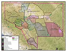 An AVA may be located within one or more larger AVAs. For example, the Santa Clara Valley AVA and Livermore Valley AVA are located within the territory of the San Francisco Bay AVA, which is itself located within the Central Coast AVA.[7] In such cases, the wine may be labeled with any of the relevant AVAs, but winemakers generally label wines with the most specific AVA allowed for each wine. Smaller AVAs are often perceived to be associated with smaller production and higher quality wines, though this is not always the case. See map on the right showing the outline of the Paso Robles AVA (California's largest in terms of area), and the different AVAs that are contained within this large AVA.