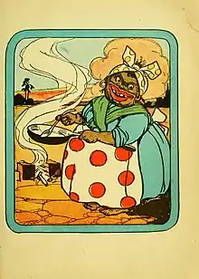In the 1950s, marketing in cookbooks and food packaging was used to differentiate between the superiority of the white housewife and the inferiority of the black ‘mammy cook.’ African-American women were believed to be ‘innate’ cooks, but naturally subject to servitude.[16] Down to the paper identifying a can of beans, black women were characterized as sexual brutes, ugly, strong, and resistant to patriarchal authority.[17] American cookbooks instructed southern women to beat dough for biscuits with all of their human strength for half an hour: alluding, but not directly mentioning, the role of slave women in the making of ‘beat biscuits’.[18] The absence of African-American women from the authors of American cookbooks of the twentieth century reflects their continued social and cultural alienation.[19] While much of American cuisine was drawn from black culture, the distorted icon of the ‘mammy cook’ overrode this contribution in the collective memory of American society.[20]