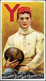 ![]() Harry Beecher on the "Champions Set" by Goodwin & Company, the first American football card set, 1888 | |