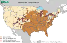 - NatureServe; Daniels, A. (2019). "Dorosoma cepedianum". IUCN Red List of Threatened Species. 2019: e.T191210A102894923. doi:10.2305/IUCN.UK.2019-2.RLTS.T191210A102894923.en. Retrieved 27 June 2022.