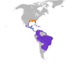 These birds are found in the southeastern states of the United States during the breeding season. They are resident species in southern Florida, the Gulf and Pacific coast of Mexico, parts of Central America, and the Caribbean. During the non-breeding season, they are found more inland in parts of Central America. They can also be found within South America during migration, and sometimes strays can be found as far north as Canada. The species' habitat is freshwater marsh with dense stands of vegetation.[6]