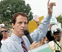 After the ACA became law, AFP worked for its repeal[3] and campaigned to block states from accepting federal funds made available under the law to expand Medicaid. State legislators who supported Medicaid expansion were targeted, including Republican Virginia state senators Emmett Hanger and John Watkins. AFP bussed in volunteers to a hearing in the state capital and to call constituents, distribute flyers, and send mailings.[187] AFP campaigned against Medicaid expansion in Michigan, Louisiana, and Nebraska[133] and helped defeat Medicaid expansion in Florida. AFP president Phillips said AFP advocated for repeal of the ACA to keep the issue "in front of the public" and to use the threat of a presidential veto to portray Obama as "unwilling to take some reasonable commonsense reforms."[21] Phillips told The New York Times that a broader goal of AFP's anti-ACA advertising spending was to present the ACA as a "social welfare boondoggle" which would foster opposition to spending on climate change.[23][188][189] In March 2012, AFP, with support from the California-based Tea Party Express, organized a rally at the Capitol during the Supreme Court's oral arguments regarding the constitutionality of the ACA.[190]