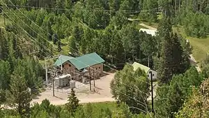 A 1905 vintage power house is still in service for Public Service Company, a subsidiary of Xcel Energy,[8] with two Pelton wheels powering a single 1904 General Electric generator, with output of 2,400 volts, and 1,082 amperes at a speed of 225 R.P.M.