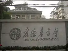 The Amity Foundation (simplified Chinese: 爱德基金会; traditional Chinese: 愛德基金會; pinyin: Àidé Jījīnhuì) is an independent Chinese voluntary organization.[1] As of 2010 it is the largest charity in China.[2] It was created in 1985 on the initiative of Christians in China with the late Bishop K. H. Ting as its founder.[3] Its main objective has been to help develop poorer areas of the country.[4] Amity's headquarters are in Nanjing. The organization includes the Amity Printing Company (APC, also sometimes called Amity Printing Press),[5] the largest Bible producer in China. Amity Printing Company opened a branch in Ethiopia in 2016. Amity Foundation has an office in Hong Kong[6] and opened a liaison office in the Ecumenical Center of the World Council of Churches[7] in Geneva in 2017.