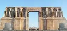 During the Umayyad period (AD 661–750), a palace structure, known in Arabic as al-Qasr (القصر), was built at the Citadel. The Umayyad Palace was probably used as an administrative building or the residence of an Umayyad official. The palace draws on Byzantine architectural patterns. For example, the entrance hall is built in the shape of a Greek cross. The palace may have been built on top of an existing Byzantine structure in this shape.[12] There is a huge water reservoir dug into the ground adjacent to the palace.