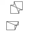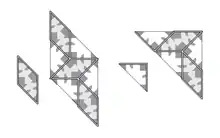 An alternate set of tiles, also discovered by Ammann, and labelled "Ammann 4" in Grünbaum and Shephard,[1] consists of two nonconvex right-angle-edged pieces. One consists of two squares overlapping on a smaller square, while the other consists of a large square attached to a smaller square. The diagrams below show the pieces and a portion of the tilings.