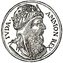 Amon of Judah[lower-alpha 1] was the fifteenth King of Judah who, according to the biblical account, succeeded his father Manasseh of Judah. Amon is most remembered for his idolatrous practices during his short two-year reign, which led to a revolt against him and eventually to his assassination in c. 641 BC.