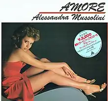 Amore is the first and only album by Alessandra Mussolini. The album was released by the Alfa Records in 1982 in Japan only and was produced by Miki Curtis. On the album, Mussolini sang songs in Italian, English and Japanese.[1] In 1982, Mussolini and her mother paid a visit to Japan. When asked if her daughter could sing for an advertisement, Mussolini's mother gave a positive answer, even though Mussolini had never sung before. Mussolini recalled that "When I sang in Japan, Cristiano Malgioglio (author of some of her songs on the album) saved me".[2] The album was broadcast in Italy for the first time in a program of Canale 5 in 1996.[3]