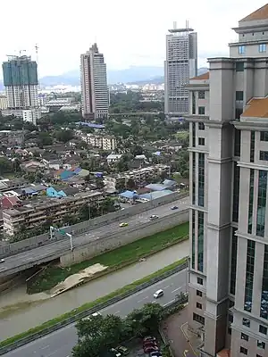 Ampang–Kuala Lumpur Elevated Highway (Malay: Lebuhraya Bertingkat Ampang–Kuala Lumpur), is the first elevated highway in Malaysia. The 7.9 km (4.9 mi) elevated highway connects Ampang (Selangor) and Kuala Lumpur.[2] This highway was built to reduce traffic jams at Jalan Ampang and make access to the city more convenient. Motorcycles and other vehicles with two wheels or fewer were banned from using this highway for safety reasons; however, the ban on motorcycles was lifted on 19 June 2008 because of escalating fuel prices.[3] This highway connects Kuala Lumpur and Selangor state.