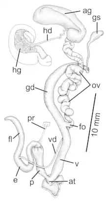 Drawing of a reproductive system of Amphidromus globonevilli.