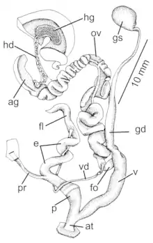 Drawing of a reproductive system of Amphidromus principalis.