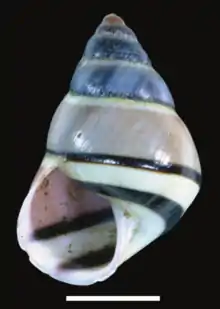 | Amphidromus xiengkhaungensis holotype shell. Scale bar is 10 mm. | |
