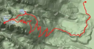 Amphitheater Lake is located in Grand Teton National Park, in the U. S. state of Wyoming.[2] Amphitheater Lake is only .20 miles (0.32 km) west of Surprise Lake and can be accessed via a strenuous climb of just under 10 miles (16 km) round trip from the Lupine Meadows trailhead.[3] Disappointment Peak is .50 miles (0.80 km) WNW of the lake.