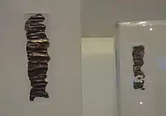 Metal amulets in the form of flat sheets made of silver, gold, copper, and lead were also popular in Late Antiquity in Palestine and Syria as well as their adjacent countries (Mesopotamia, Asia Minor, Iran). Usually, they were rolled up and placed in a metal container with loops[17] to be carried by a necklace. They were incised with a needle with manifold incantation formulars and citations and references to the name of God (Tetragrammaton).[18] Most of them are composed in various kinds of Aramaic (Jewish Aramaic, Samaritan Aramaic, Christian Palestinian Aramaic, Mandaic, Syriac) and Hebrew,[19][20] but there exist also sometimes combinations with Greek.[21][22]