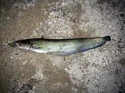 | An Amur catfish caught using a lure at Lake Biwa | |