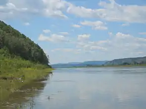 Its ancient Chinese names were Yushui, Wanshui and Heishui, formed from variants to shui, meaning "water".[13] The modern Chinese name for the river, Heilongjiang means "Black Dragon River", while the Manchurian name Sahaliyan Ula, the Mongolian names " Amar mörön " (Cyrillic: Амар мөрөн) originates from the name " Amar " meaning to rest and Khar mörön (Cyrillic: Хар мөрөн) mean Black River.[1]
