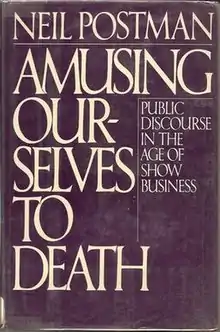 Amusing Ourselves to Death: Public Discourse in the Age of Show Business (1985) is a book by educator Neil Postman. The book's origins lay in a talk Postman gave to the Frankfurt Book Fair in 1984. He was participating in a panel on George Orwell's Nineteen Eighty-Four and the contemporary world. In the introduction to his book, Postman said that the contemporary world was better reflected by Aldous Huxley's Brave New World, whose public was oppressed by their addiction to amusement, rather than by Orwell's work, where they were oppressed by state violence.