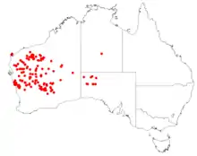 Amyema fitzgeraldii, the pincushion mistletoe,[3] is a species of flowering plant within the genus Amyema, an epiphytic hemiparasitic plant of the family Loranthaceae endemic to Australia, and found in the Northern Territory, South Australia and Western Australia.[4]