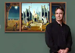 "Try doing a triptych. The left panel depicting a radiant moon-lit beach and an endless stream of young naked couples running silently along the water's edge. On the beach, a tiny infant grins at the universe and around its crib stand several ancient, old people ... The center, a modern city or metropolis of the future at noon, insane with activity ... The last panel, a view through a car windshield at night on a long straight desert highway."[18]