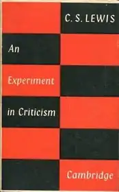 An Experiment in Criticism is a 1961 book by C. S. Lewis in which he proposes that the quality of books should be measured not by how they are written, but by how often they are re-read. To do this, the author describes two kinds of readers. The "unliterary" reader tends not to reread the same book, while the "literary" reader does. He suggests the categorization of books as either "highbrow" or "lowbrow" is deficient in that it fails to appreciate those qualities which have merited re-reading.