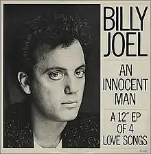 "An Innocent Man" is a 1983 song performed by Billy Joel released as the third single from his album of the same name. The song, whose musical style is an homage to Ben E. King and the Drifters, reached No. 10 on the Billboard Hot 100 chart, the third consecutive top 10 single from the album.[1] It also spent one week at No. 1 on the Billboard adult contemporary chart.[2]