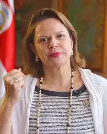 In 2014, Chacón became Luis Guillermo Solís' second vice presidential candidate, alongside Helio Fallas.[9] Her selection was a surprise to many PAC followers given her support of CAFTA during the Arias administration and her past association with PUSC.[10] She explained the disagreement about CAFTA by saying that it had not been implemented correctly, citing problems of corruptions, ethics, and transparency.[10]