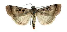 The ground colour of the forewings is brownish red.[1]