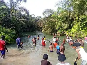The Anambra River (Igbo: Ọmambala) flows 210 kilometres (130 mi) into the Niger River and is found in Anambra, Nigeria. The river is the most important feeder of the River Niger below Lokoja. The flow of the Ọmambala River is released into the Atlantic through various outlets forming the 25,000-square-kilometre (9,700 sq mi) Niger Delta region.[2]