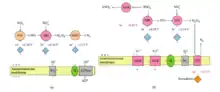 Whether the reduction of nitrite and the oxidation of hydrazine occur at different sites of the same enzyme or the reactions are catalyzed by different enzyme systems connected via an electron transport chain remains to be investigated.[30] In microbial nitrogen metabolism, the occurrence of hydrazine as an intermediate is rare.[32] Hydrazine has been proposed as an enzyme-bound intermediate in the nitrogenase reaction.[33] Recently, using detailed molecular analyses and combining complementary methods, Kartal and coworkers published strong evidence supporting the latter mechanism.[12][34] Furthermore, the enzyme producing hydrazine, hydrazine synthase was purified and shown to produce hydrazine from NO and ammonium.[12] The production of hydrazine from ammonium and NO was also supported by the resolution of the crystal structure of the enzyme hydrazine sythase.[35]