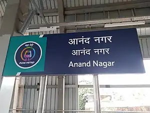 Anand Nagar is a Pune Metro station in Pune, India. The station was opened on 6 March 2022 as an inauguration of Pune Metro and was the first to be completed.[1] The Aqua Line is operational between Vanaz and Garware College.[2]