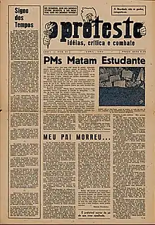 With the end of the Estado Novo in 1945 and the country's subsequent democratization, anarchists believed that this would be the time for a more organic articulation, forming specific political organizations and founding new journals, in an attempt to impress greater participation in Brazilian political life. The first anarchist newspaper to form was Remodelações, launched in Rio de Janeiro and coordinated by anarchists Moacir Caminha and Maria Iêda,[198] on October 10, 1945, a few days after the end of the Getúlio Vargas dictatorship, and circulated weekly until 1947.[199] With the reappearance of Ação Direta in 1946, also in Rio, Rio anarchists began to focus their efforts on the organization of only one journal.[198] In São Paulo, anarchists resumed the publication of A Plebe in 1947.[200] The anarchist press served, at that time, as an aggregating and dynamic element for a rearticulation of the dispersed militants.[201] But financial difficulties caused A Plebe to end its activities 1951 and, in 1960, Ação Direta was replaced by the newspaper O Libertário, whose edition was motivated by the “imperative need to keep relations between libertarian activists alive”, in view of the end of previous publications and the absence of a greater organism.[202]
