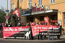 Anarchists, libertarian socialists and anti-fascists in Germany have been protesting what is seen as increased state control and surveillance. Focusing on increasing gentrification, wealth inequality, evictions and police measures. Anarchists have seen increasing evictions of anarchist communities and squats.[38][39][40]
