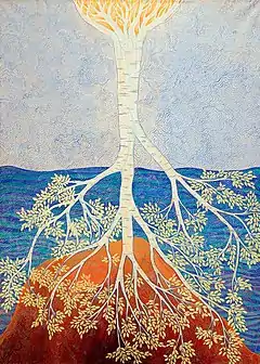 According to the Anastasians, the theme of the "singing trees" or "ringing trees", that is to say trees emitting vibrations transmitting information, is part of an ancient Eurasian and worldwide wisdom,[21] a way of life consisting in the cultivation of Rod (Род, literally "Generator") — God conceived as continuous "Generation", "Nature" —, which has been preserved over the centuries in its purest form by Russians and volkhvs (shamans) who escaped the Christianisation of Kievan Rus' fleeing to Siberia — a Christianisation which was decided by the ruling elites in order to disrupt the relational ties within society and of human society with nature, with ancestors and gods of the environment as the direct link to the supreme God, justifying the confiscation of all land and the enslavement, and exploitation through taxation and trade, of the population.[22]