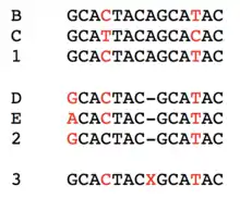 Candidates used for ASR are often selected based on the particular property of interest being studied – e.g. thermostability.[9] By selecting sequences from either end of a property's range (e.g., psychrophilic proteins and thermophilic proteins) but within a protein family, ASR can be used to probe the specific sequence changes that conferred the observed biophysical effect – such as stabilising interactions. Consider in the diagram, if sequence 'A' encoded a protein that was optimally functional at neutral pHs and 'D' in acidic conditions, sequence changes between '5' and '2' may illustrate the precise biophysical explanation for this difference. As ASR experiments can extract ancestors that are likely billions of years old, there are often tens if not hundreds of sequence changes between ancestors themselves and ancestors and extant sequences – because of this, such sequence-function evolutionary studies can take a lot of work and rational direction.[1][6][16]