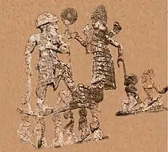 The Ubaid period (c. 6500–3800 BC)[28] is a prehistoric period of Mesopotamia. The name derives from Tell al-'Ubaid in Southern Mesopotamia, where the earliest large excavation of Ubaid period material was conducted initially by Henry Hall and later by Leonard Woolley.[29]