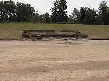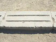 A section of the stone starting line at Olympia, which has a groove for each foot