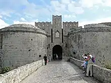 - Medieval walls, created in the mid-14th century on a previous line and remade after the Ottoman siege of 1480 and the earthquake of the following year. In 1522 Suleiman entered the city from the gate of St. Anastasius